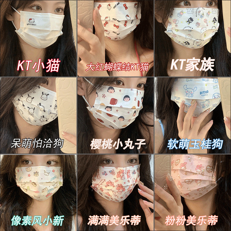 すっぴん白マスク高颜値可爱い小清新サンリオまる子クレヨンしんちゃんハローキティ