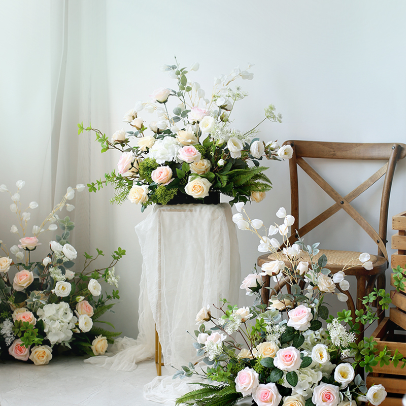 白ピンク森系結婚式現場花芸布景ウェディングドレス店ショーウインドー店の植物装飾テーブル花着地花