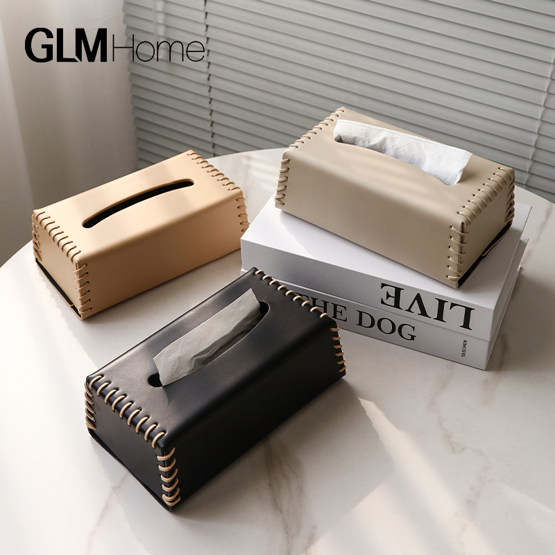 北欧の創意皮革は紙箱を引き出して収納して飾って軽くて高級な家庭の客間の食卓のお茶のティッシュの箱の置物を設けます。