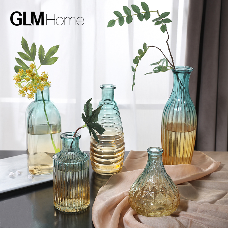 Ins北欧ひし形レリーフ透明ガラス花瓶食卓水培ドライフラワー生け花器リビング装飾品置物