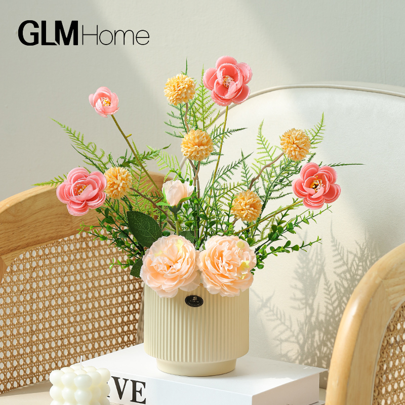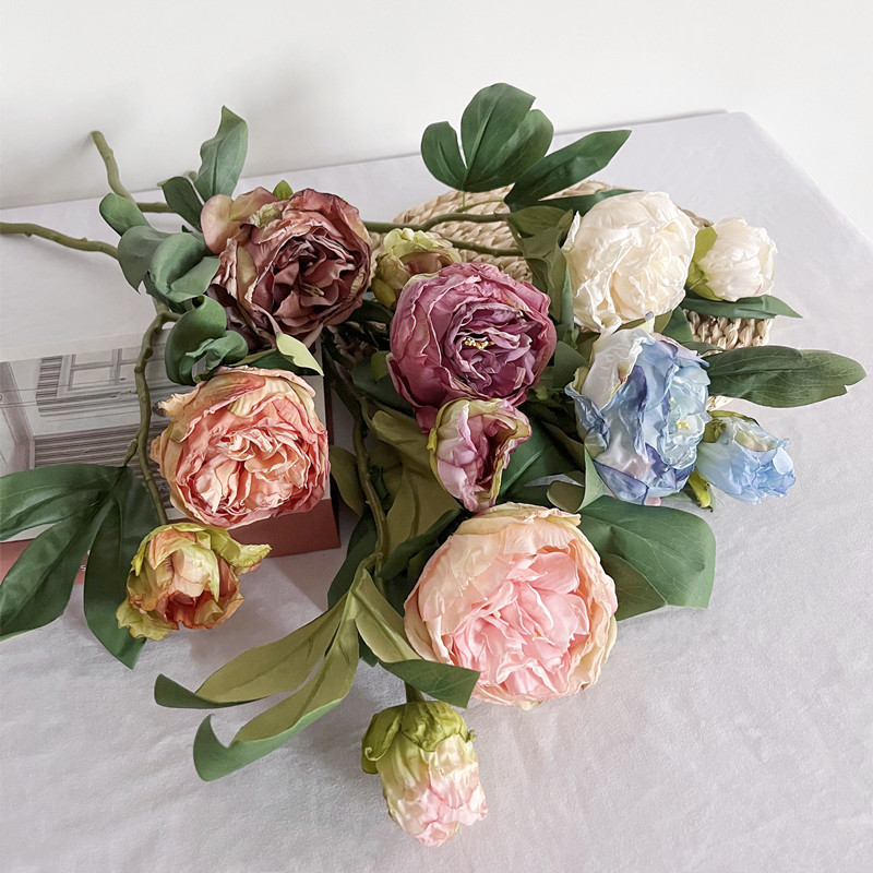 牡丹の花の新型の造花は花の盆栽の客間の置物の高級な食卓の置物の花の家の装飾の花の装飾の飾り物を模倣します。