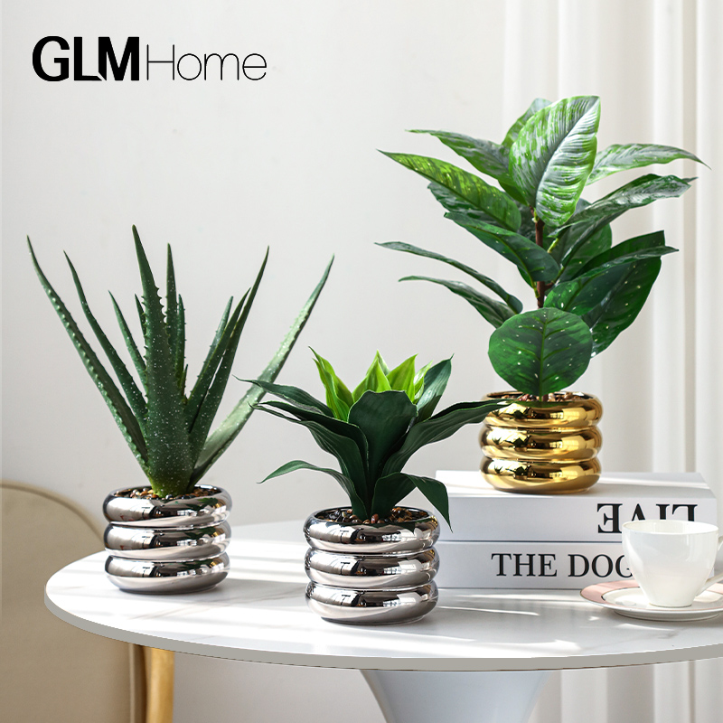 北欧の軽い豪華な電気めっきの陶磁器の車輪の植木鉢の置物insのアイデアのアロエの緑の羅のテーブルの装飾の花芸の置物