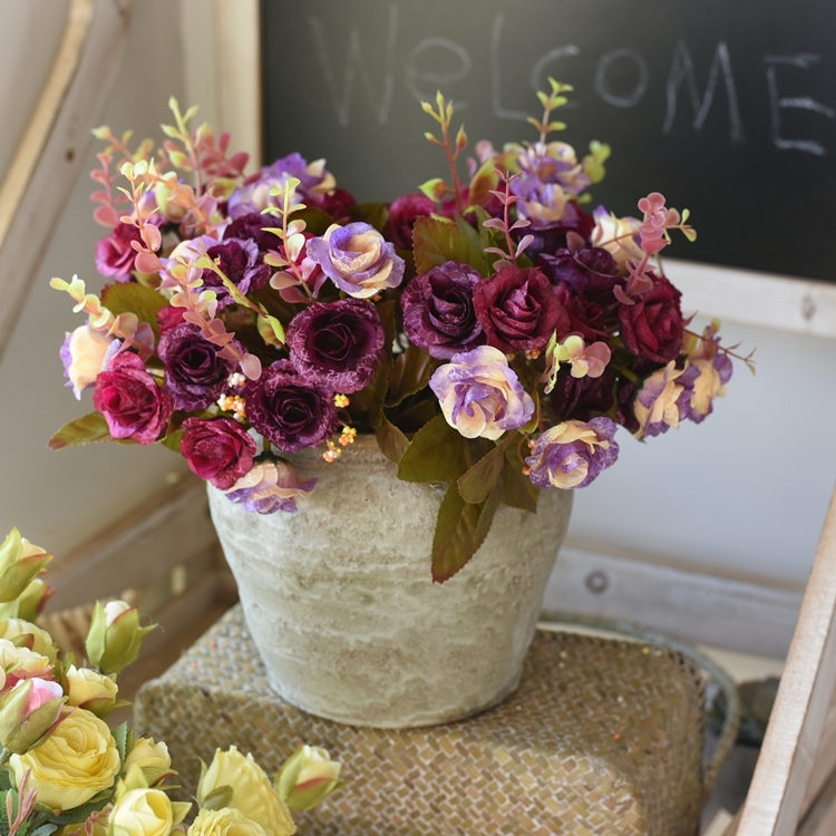 モダンヨーロッパ風シミュレーションローズブーケホームリビングルームインテリア造花絹花シミュレーション緑植え生け花ドライフラワー