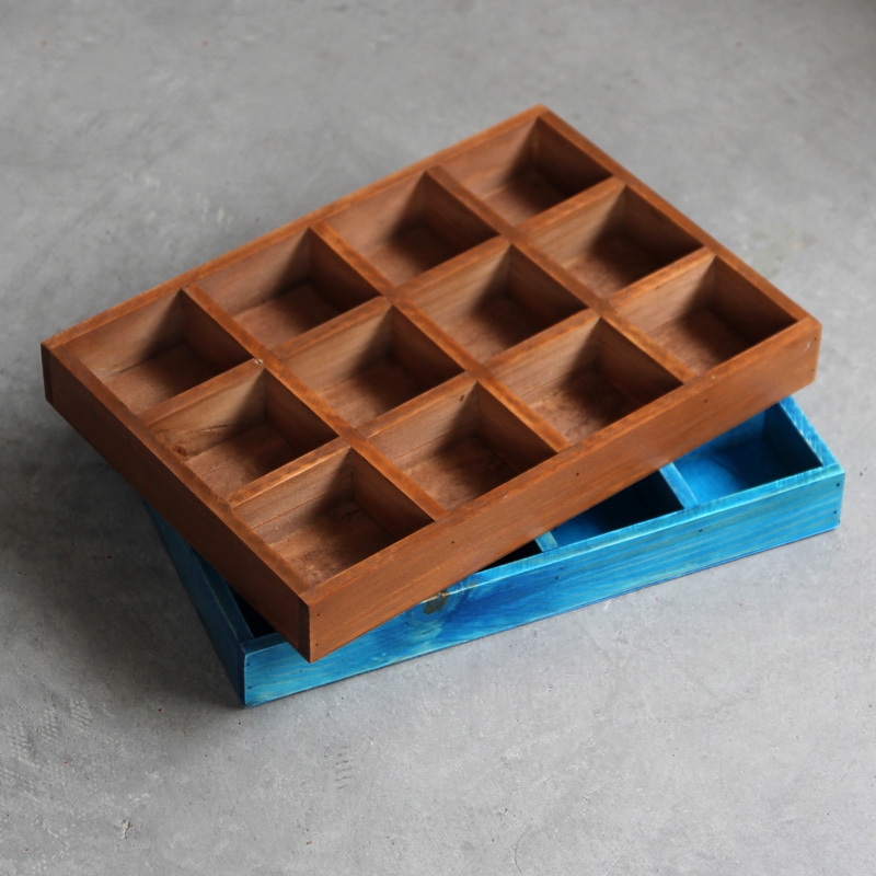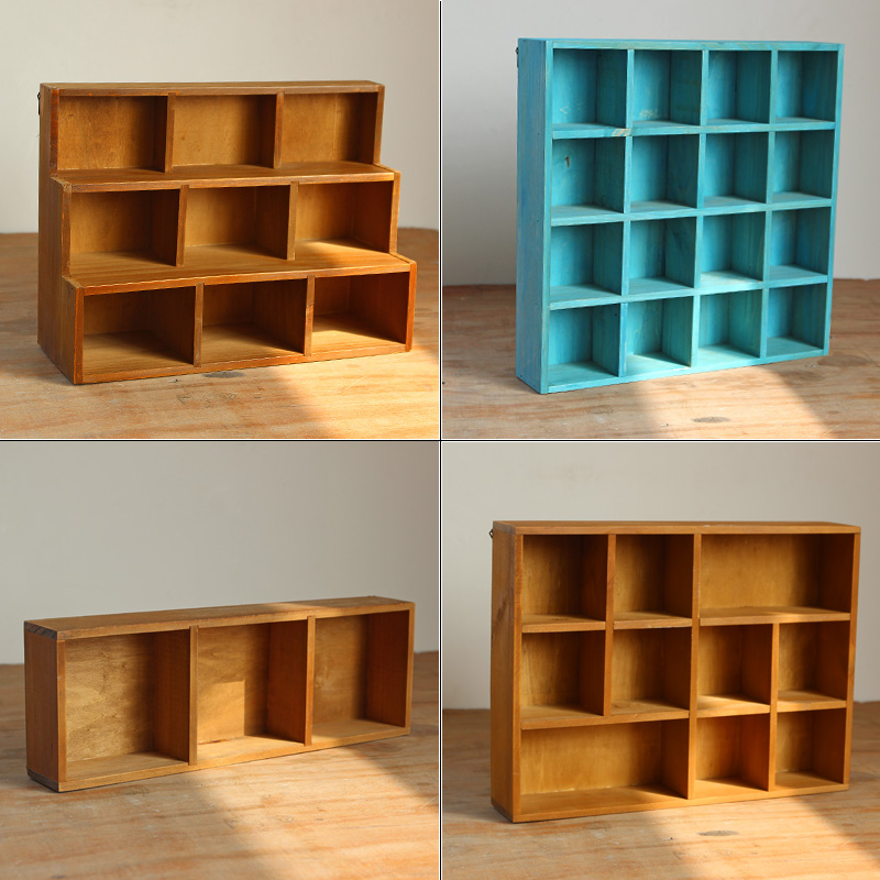 Zakka雑貨木製収納ボックスレトロ古いデスクトップ化粧品格子整理ボックス分格木ボックス