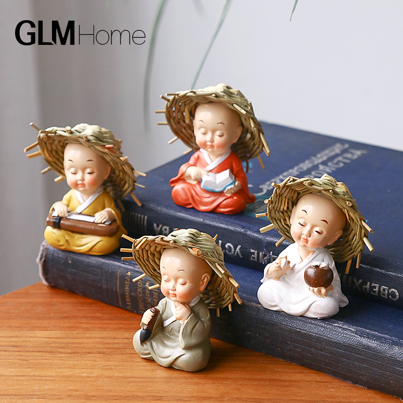 【4匹】創意麦わら帽子小僧置物新中国式禅意客間オフィスデスクトップ装飾小置物