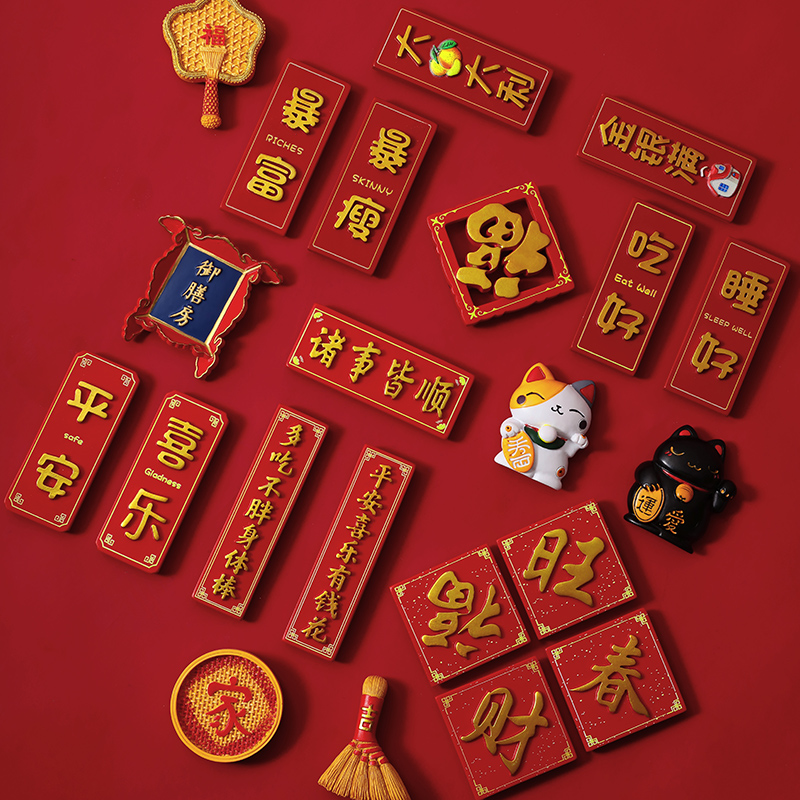 平安喜楽中国風冷蔵庫貼り高級冷蔵庫磁力貼り磁気個性創意3d立体新年装飾