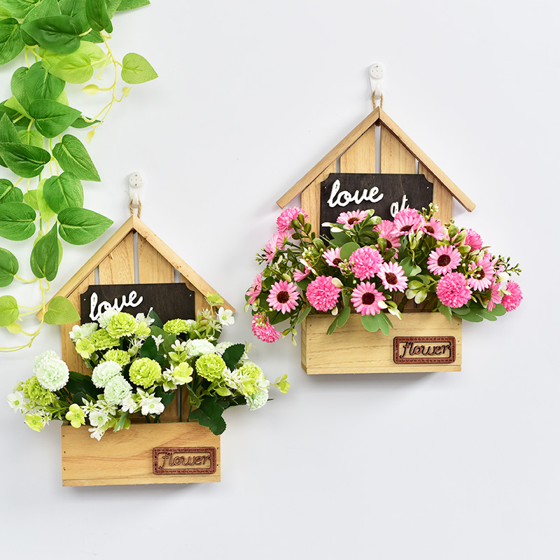 木製の壁掛けのシミュレーション花の小さい家の形の幼稚園の学校の室内の客間の壁面の装飾の花の造花のペンダント
