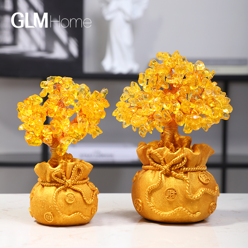 黄水晶発財樹風水置物家庭用酒倉装飾品創意客間玄関小金の木工芸品