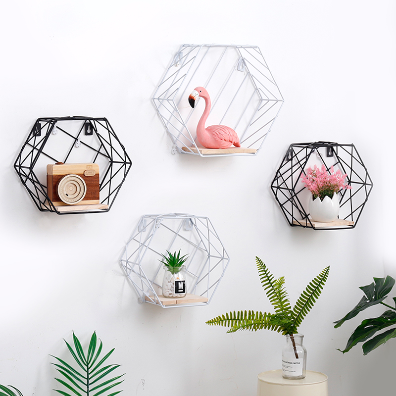 北欧風寝室リビングルーム装飾品六角形ins風物置棚壁壁面壁掛け棚