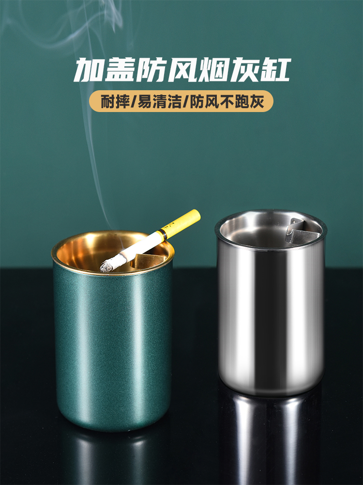 創意蓋付き飛灰防止ステンレス漏斗灰皿家庭用転倒防止個性潮流オフィスデスクトップ灰皿