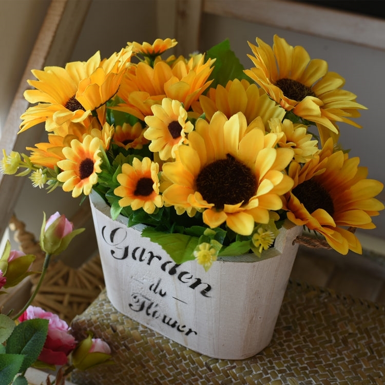 擬似花束ヒマワリ花ヨーロッパ風田園室内装飾結婚祝い造花セット擬似鉢植え太陽花