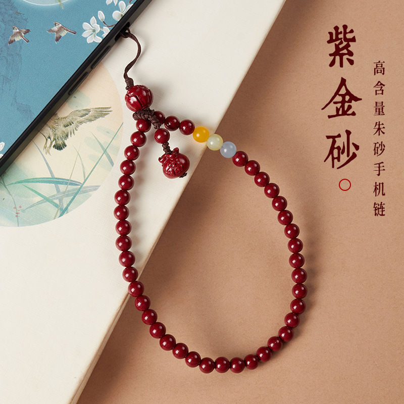 保真朱砂携帯電話ストラップ女2024年新型紫金砂携帯電話チェーン本命年手首ロープ手作り