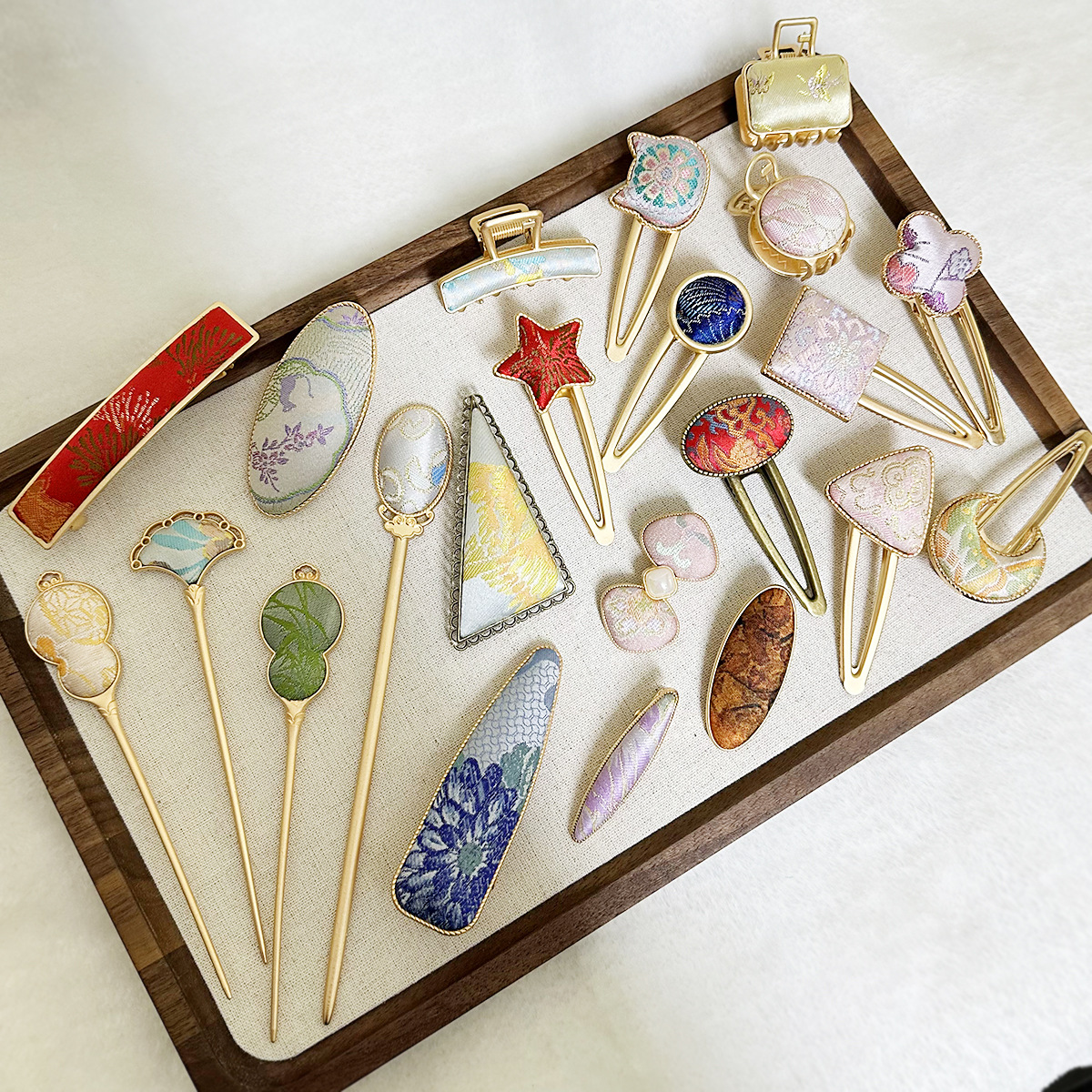 宋錦ヘアピン半完成品 DIY 如意トークンビスケット楕円形レザーポイント翡翠螺鈿アクセサリー工場卸売