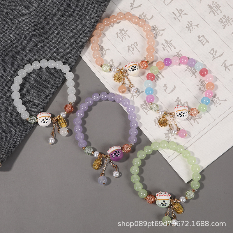 陶磁器招財猫瑠璃ビーズブレスレット女性大衆清新水晶手串アクセサリー観光地区生放送メーカー卸売り