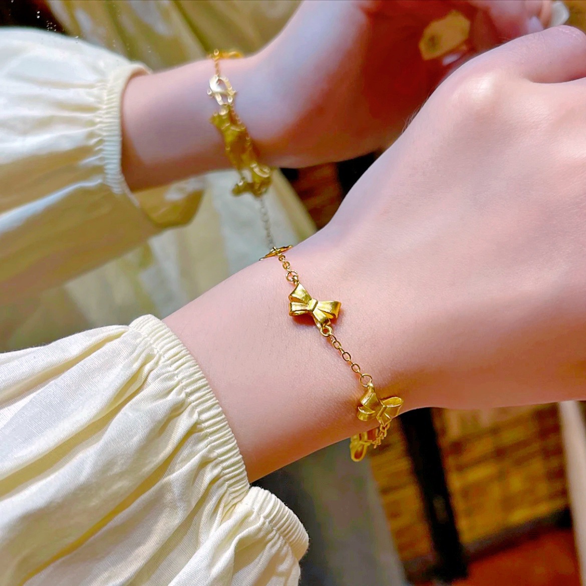 高保色古法沙金蝶結びのブレスレットは軽くて豪華なファッションの古風が黄金の手をまねて逃げています。