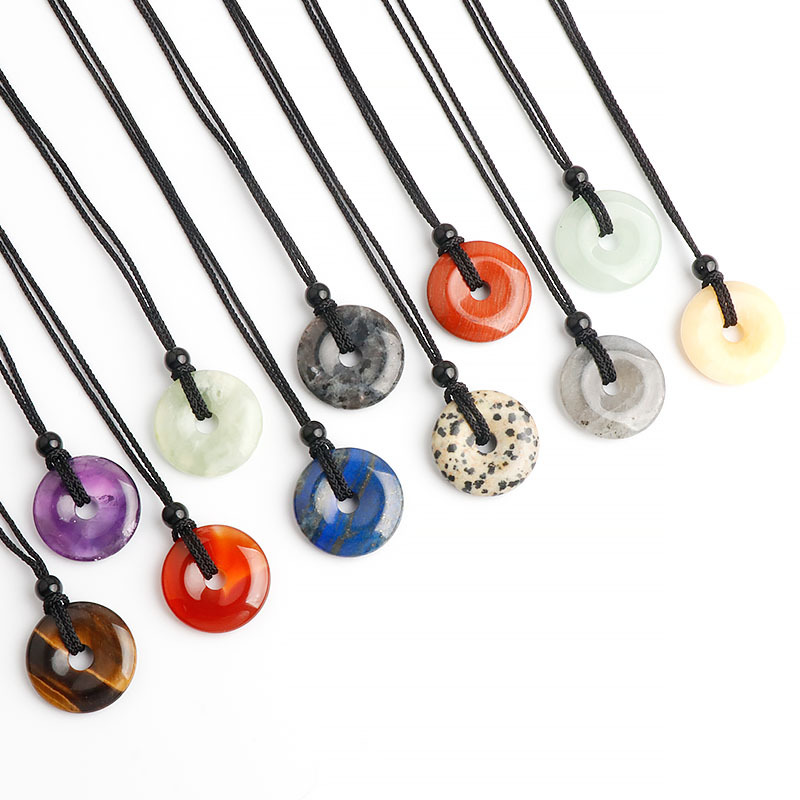 天然水晶瑪瑙半貴石アメジスト 25 ミリメートル安全バックルネックレスドーナツ織りペンダントインスタイルクロスボーダー
