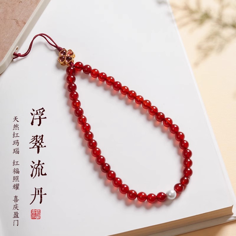 天然紅瑪瑙チェーンの携帯チェーンのペンダントの本命年の高級手首の縄は携帯電話をなくして縄のカメラu盤の縄を掛けます。
