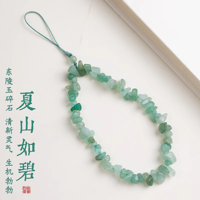 オリジナルの清新な墨緑玉髄携帯チェーン女性中国民族風貝珠携帯ケースのストラップ
