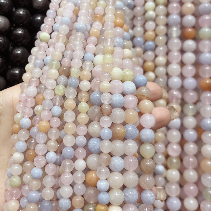 天然モルガナイトルースビーズラウンドビーズ DIY 翡翠ジュエリーアクセサリーブレスレットブレスレット手作り半完成品