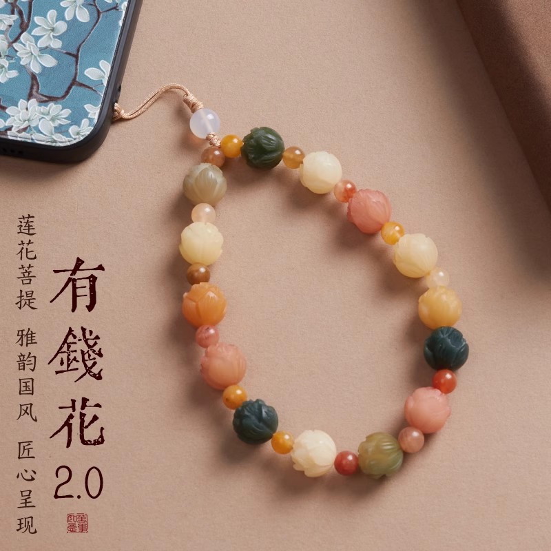 金持ちの花白玉菩提携帯チェーンの女性金糸玉携帯ケースのストラップ