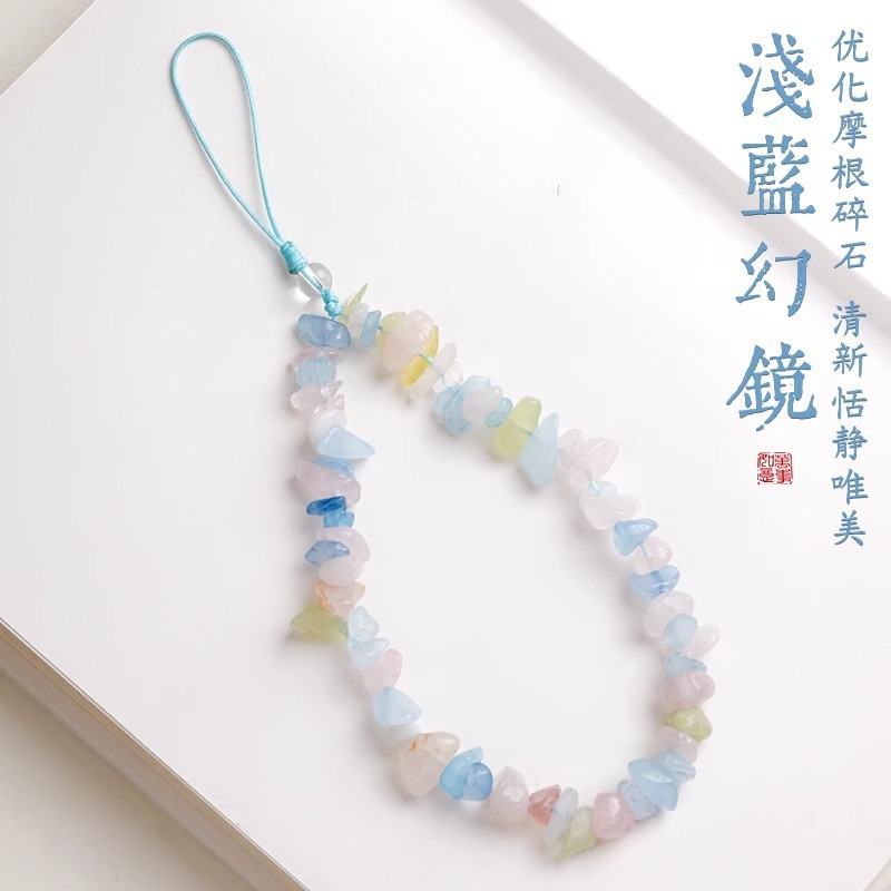 天然海藍宝粉晶黄水晶紫水晶携帯チェーンは手首の縄を掛けます。