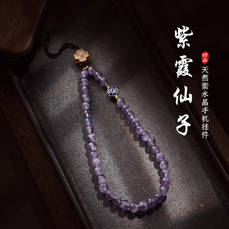 紫霞仙子天然幻紫水晶ストラップ携帯電話ケース手首ロープ女性精致携帯電話チェーンロープ
