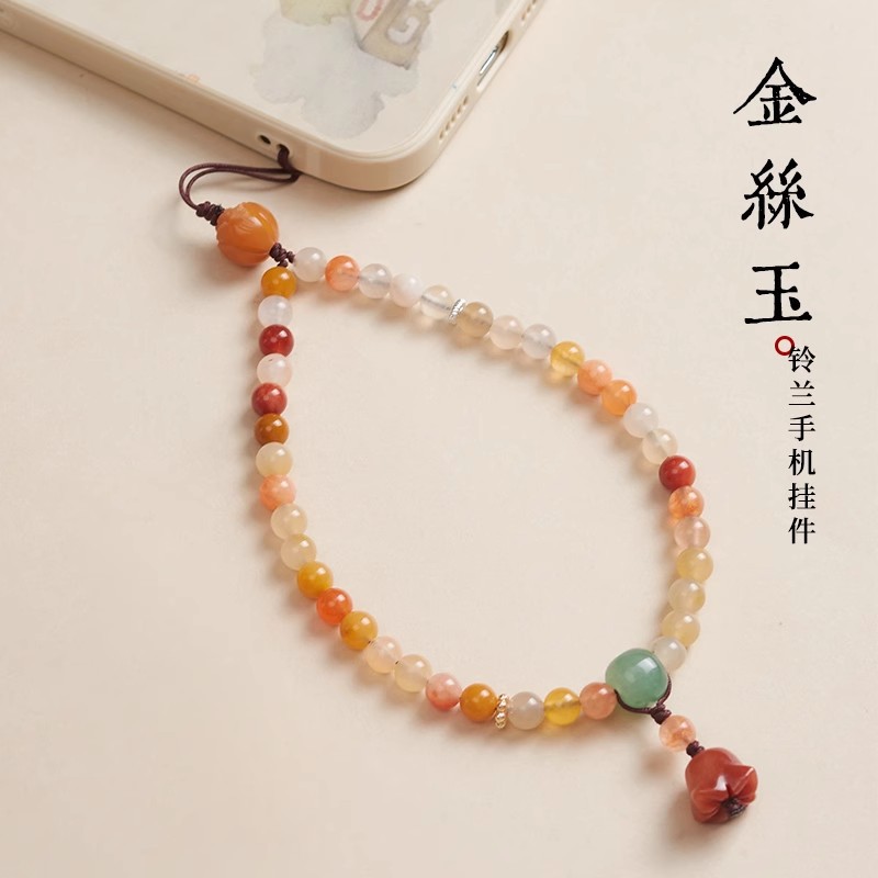 天然の東陵玉の砂利の携帯チェーンのペンダントの手首の縄の短いタイプの女性の金の紛失防止の高級感の水晶の携帯電話の縄