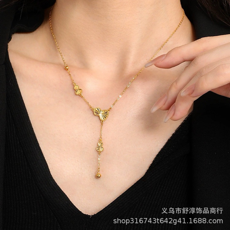 金店の同じタイプのエナメルの真珠の花の糸の蝶のフリンジペンダントのネックレスの金メッキの軽い豪華な鎖の鎖の気質の卸売り