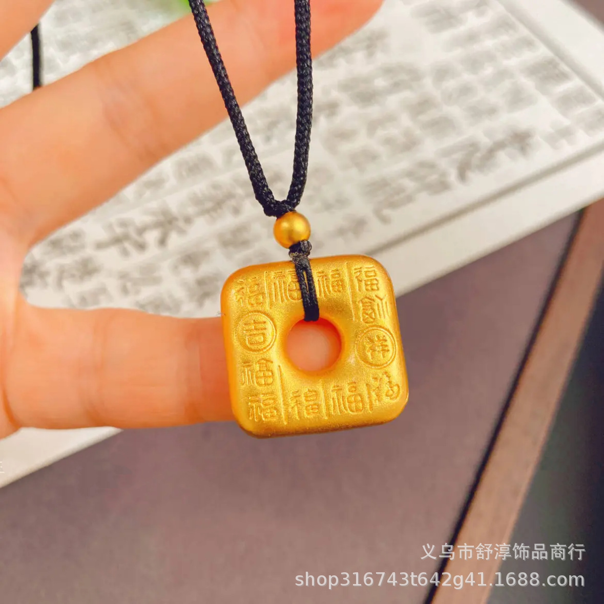 高保色の復古福の字の四角形の平安はペンダントのネックレスを掛けます。