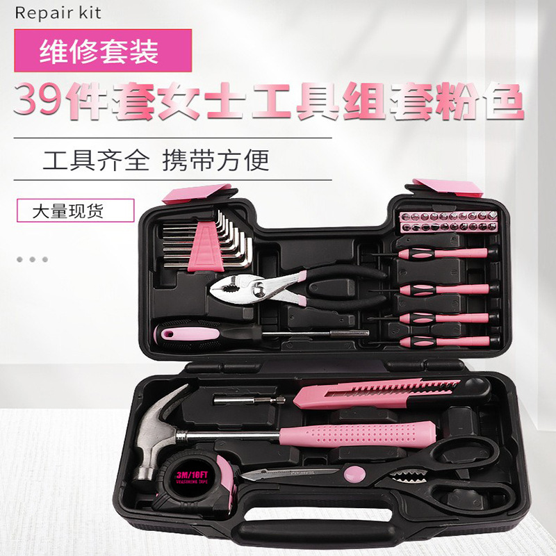 39点セットピンクレディースコンビネーション炭素鋼peブローケースカラー手動ドライバー修理工具セット