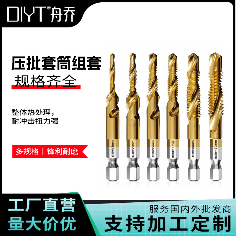 メーカー直販7点セット複合タップメッキ青コーティングドリル一体延長ロッド螺旋タップ高速炭素鋼