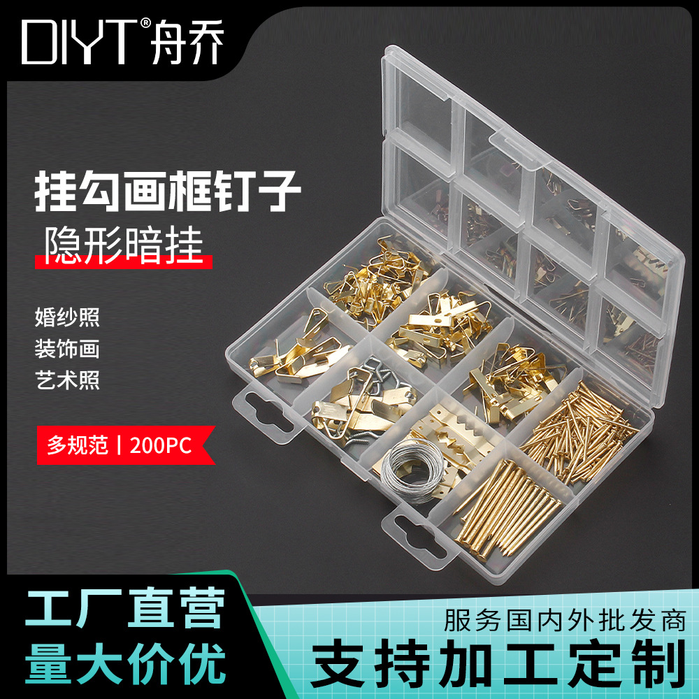 クロスボーダー特価金物セット200pcs人気アメリカ式フックフレーム釘ppケース透明セット