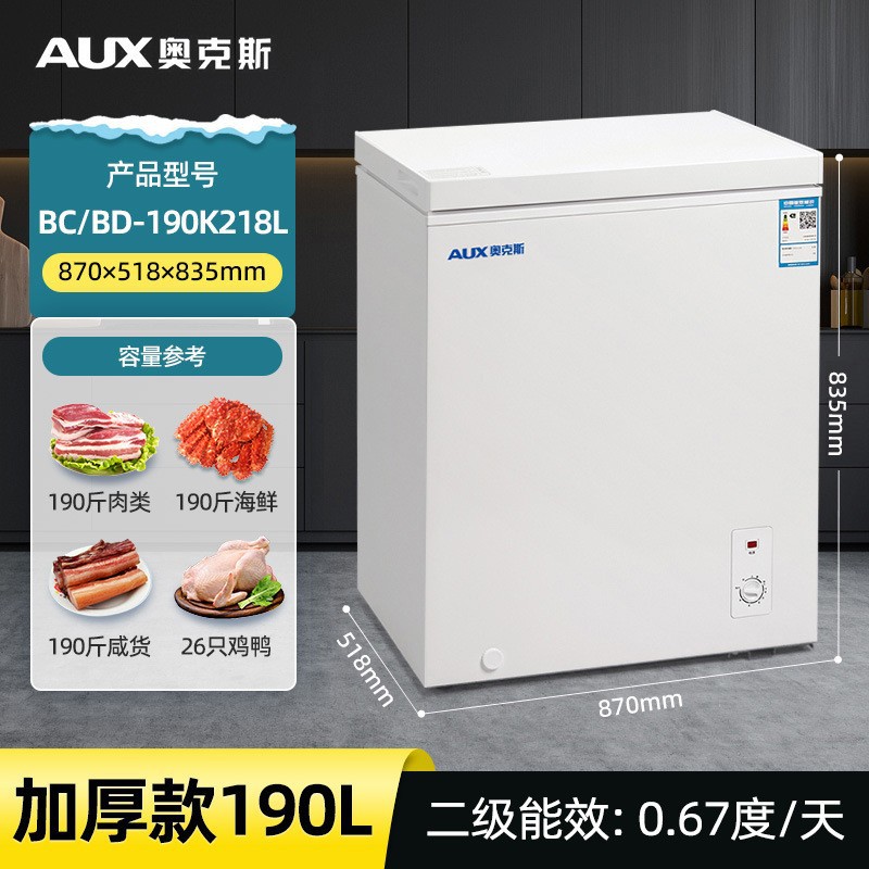 オークス小型冷凍庫家庭用完全冷凍小型商業大容量急速冷凍冷蔵両用キャビネット横型ミニボックス