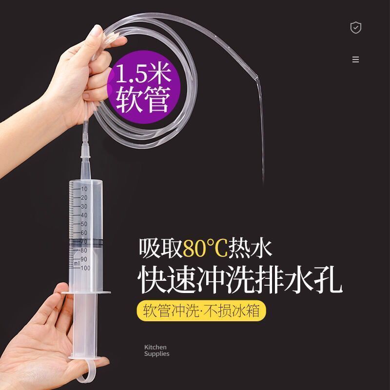 冷蔵庫の疎通器の洗浄排水孔の排水管路が詰まっています。