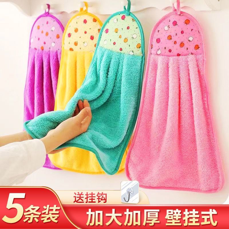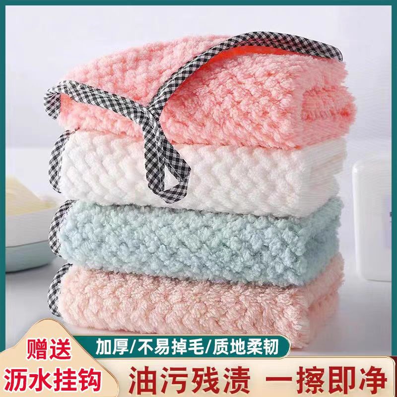 キッチンタオル吊り下げ式かわいいタオル雑巾吸水可能家庭用トイレ厚手布ハンカチサンゴパイル