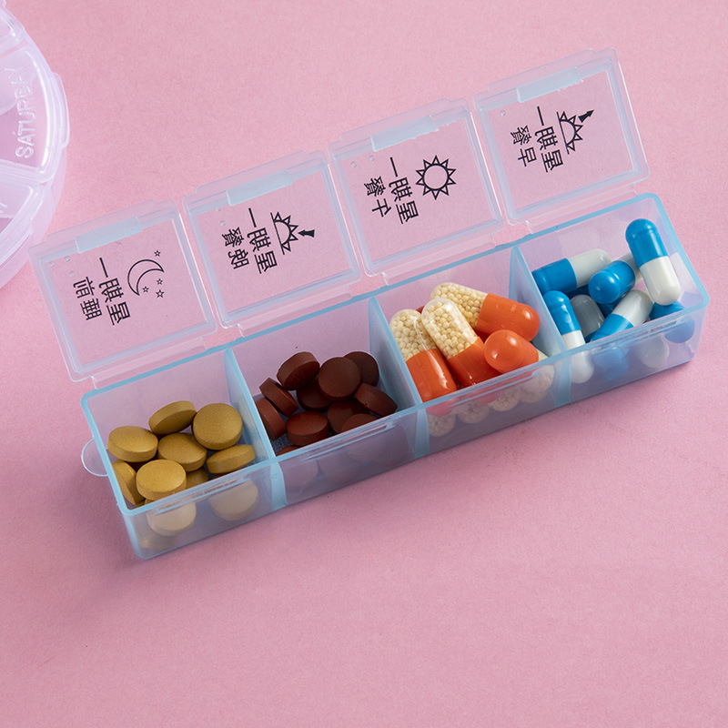 薬箱携帯7日間収納分注小型ミニ密封分注箱朝と晩の防湿箱分薬器が小さいです。