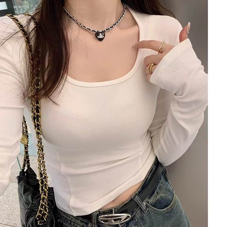 徳絨毛保温底シャツの女性の小さいシャツのフランス式の修身の低い襟の長袖のtシャツの秋冬の中で上着のギャルを掛けて発熱します。