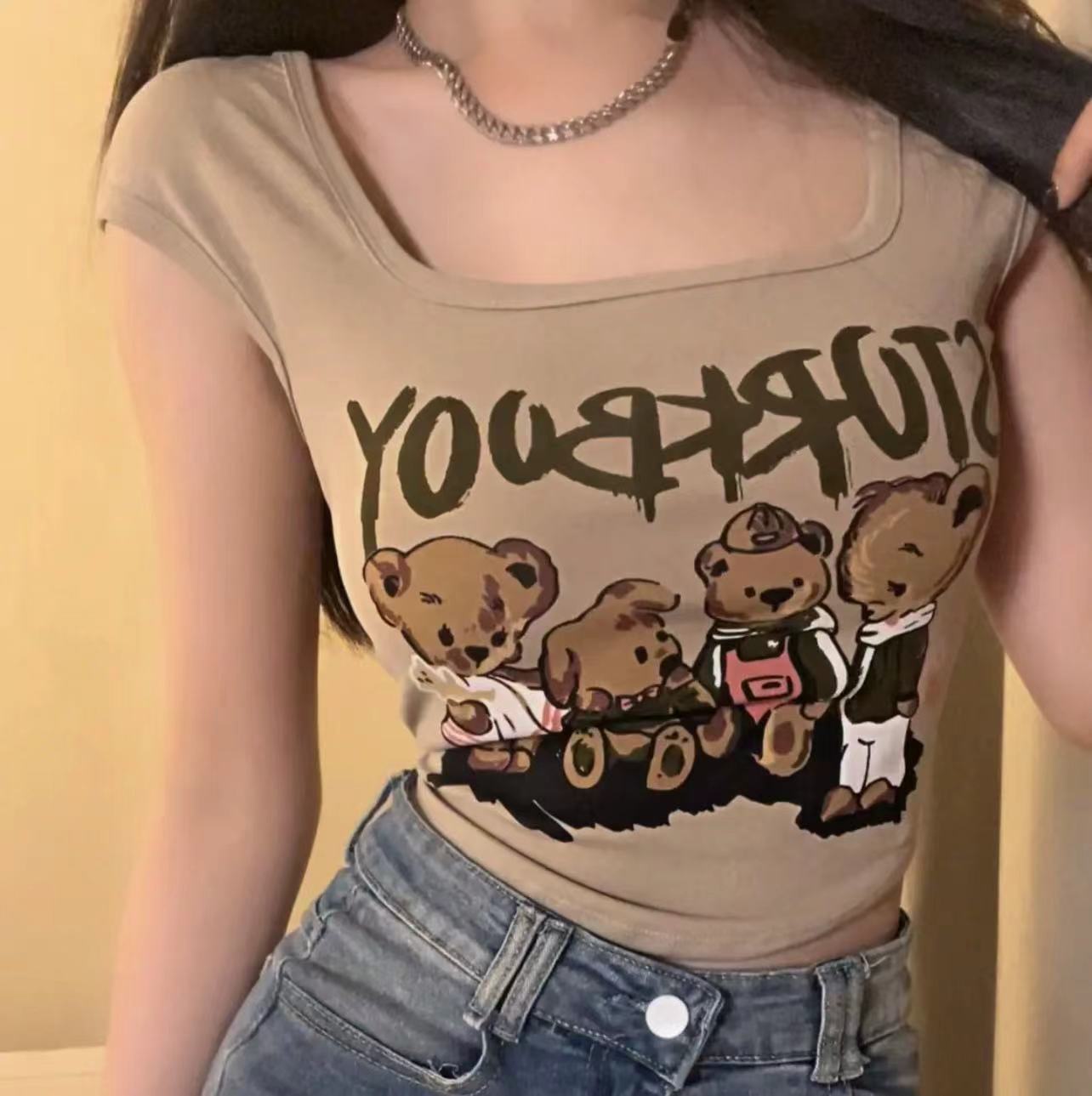 胸パッドを持って色を合わせた半袖プリントが痩せていて、デザイン感があります。