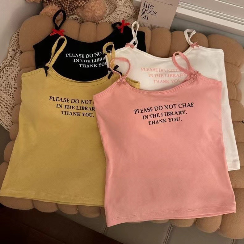 アルファベットのプリントの蝶結びのストラップのベストの女性のギャルは胸のパッドの夏の新型の美背の修身の底の上着の女性を持ちます。