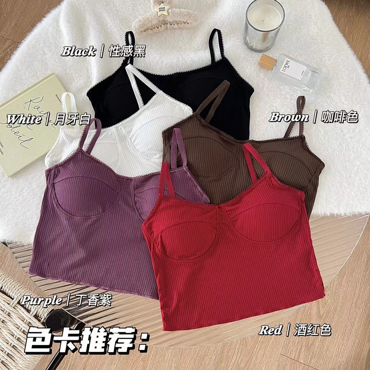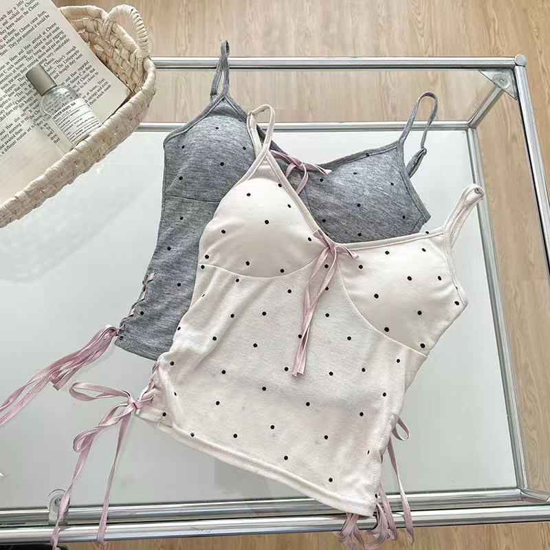 露背美背ストラップベスト女性の波点ストラップ蝶ステッチ胸パッド付きスリム美背底上着