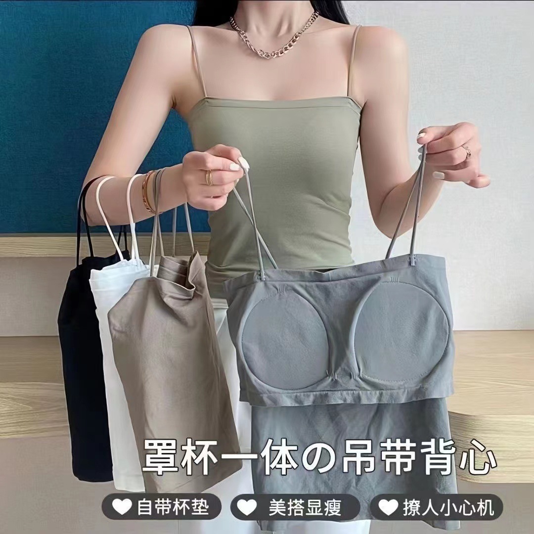 美背露背黒セクシー袖なし工字背心帯胸パッド付き小ストラップ女性夏内着修身上着