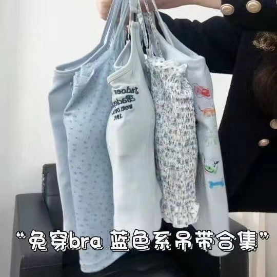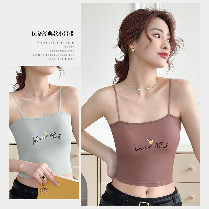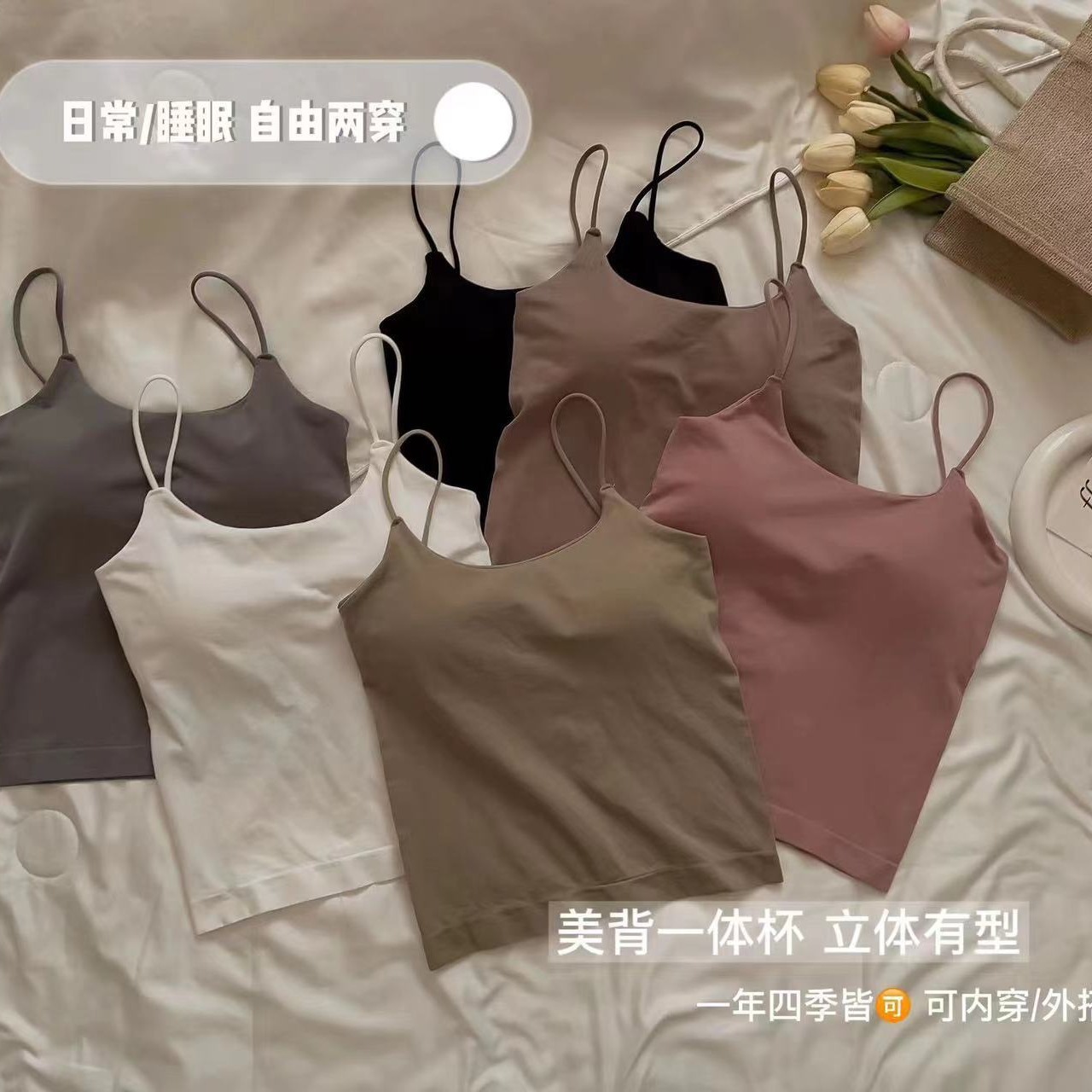 シームレスベスト少女夏韓国版修身純色上着スチールリングなし胸パッド付きの短いノースリーブストラップベスト