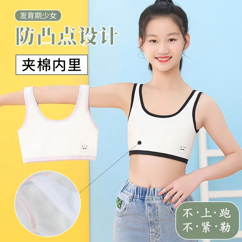 発育期の少女の下着の中学の小学生は胸の中の大きい女の子の薄いタイプの純綿のブラジャーの小さいベストを包みます。