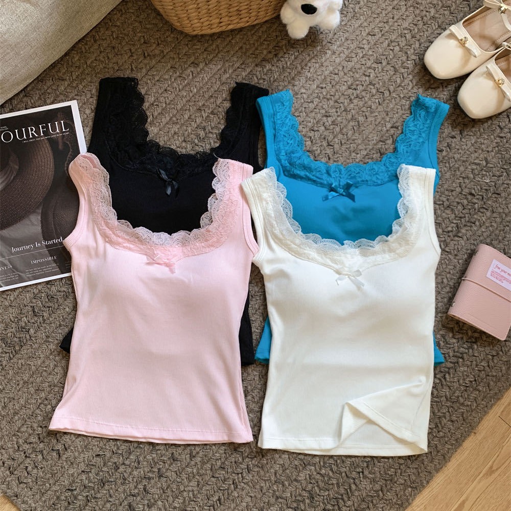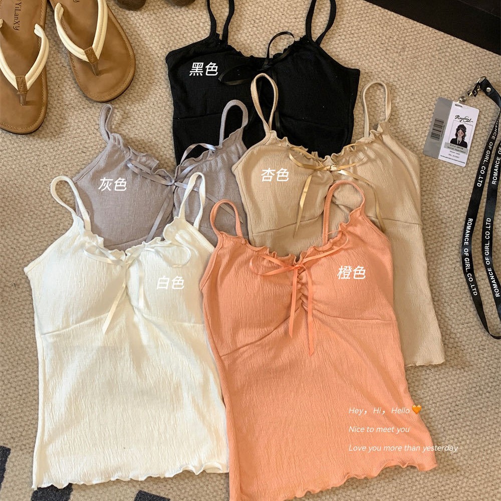 レースの縁には胸パッドがついています。純欲の白い蝶結びのキャミソールの女性bm風の甘いギャルがスリムに見えます。