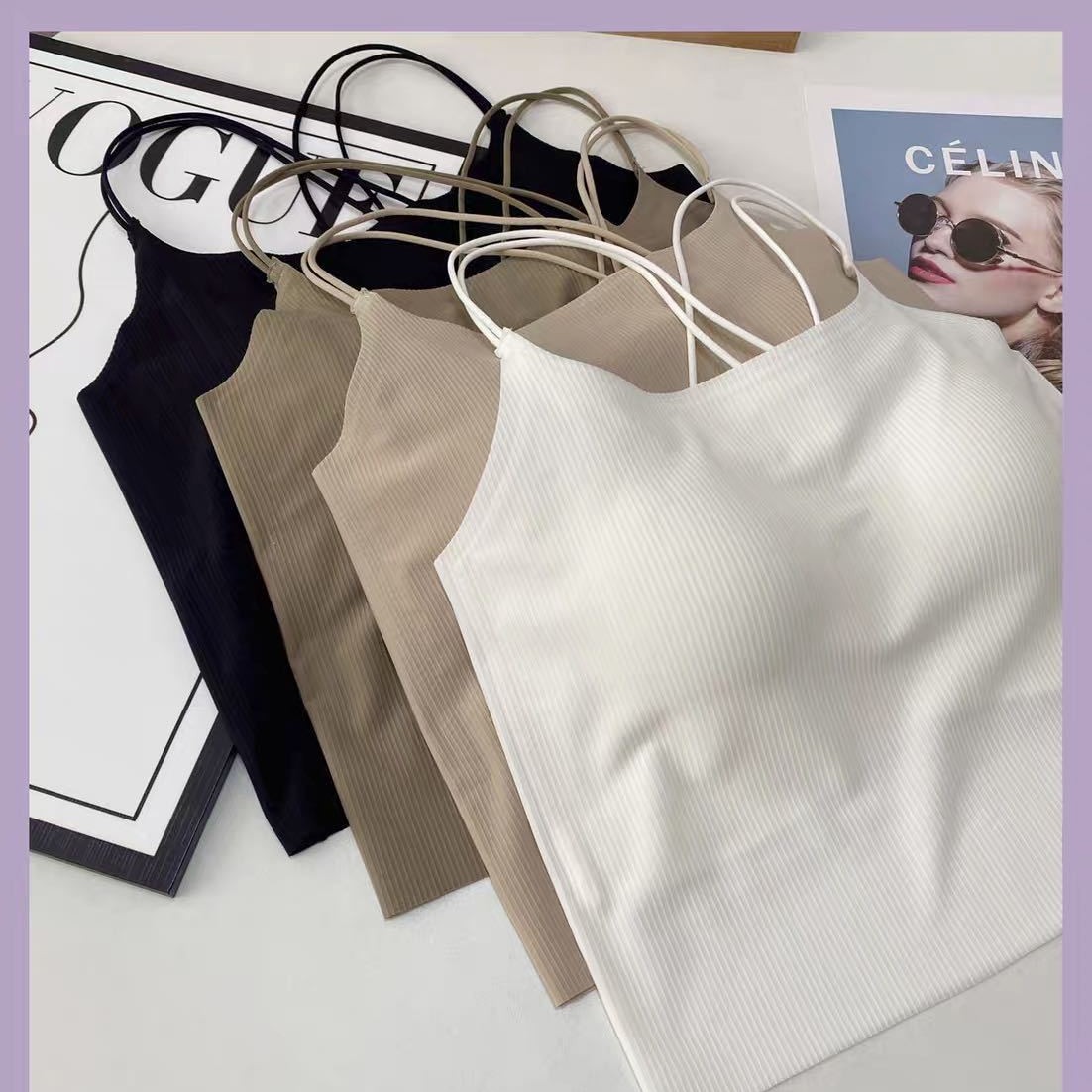 夏の美背氷糸ストラップのベスト女性は胸パッドの背中が交差しています。