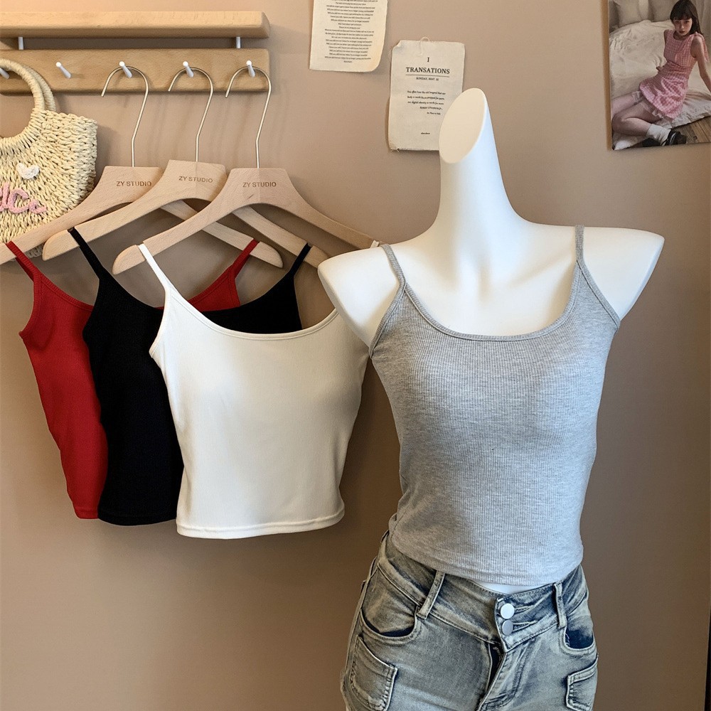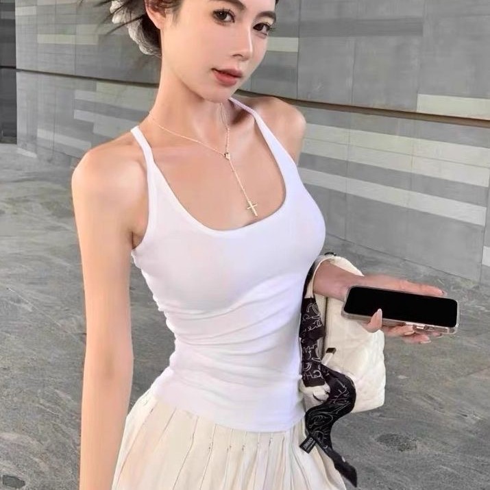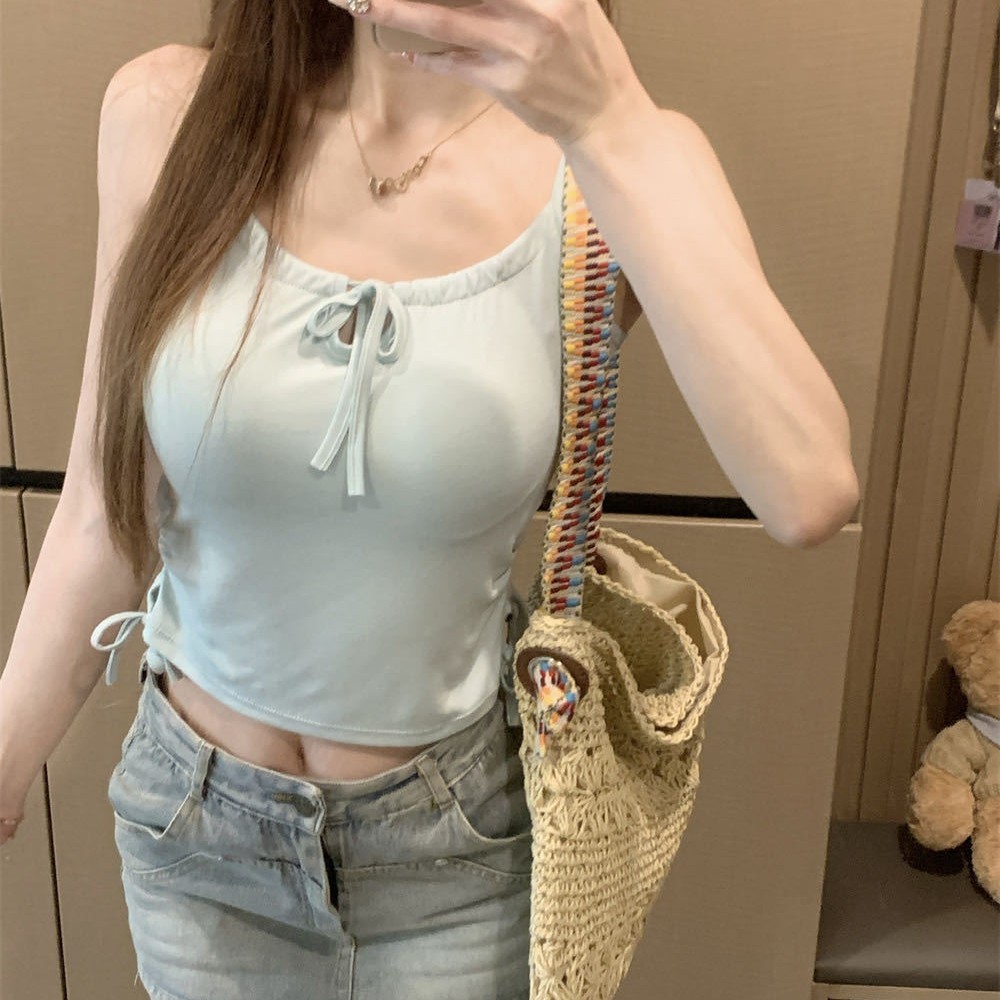 夏のごキャラのギャルのストラップの小さいベストは胸のパッドを持って身を修めて痩せています。