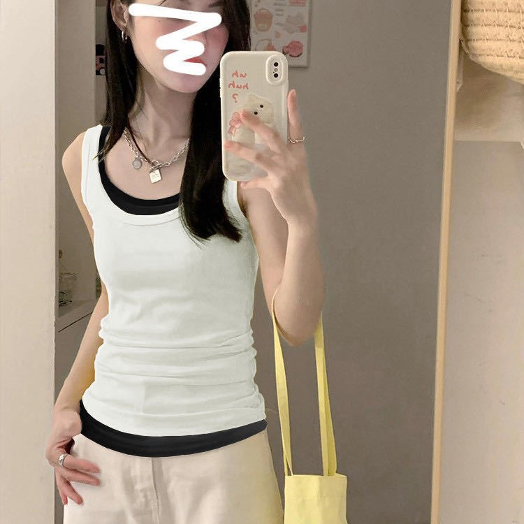 夏の衝突色の基礎モデルは簡単で偽の2つのベストのドーパミンは胸のパッドを持って身を修めて痩せています。