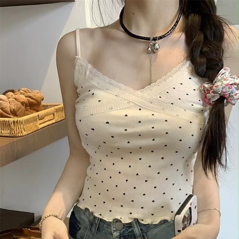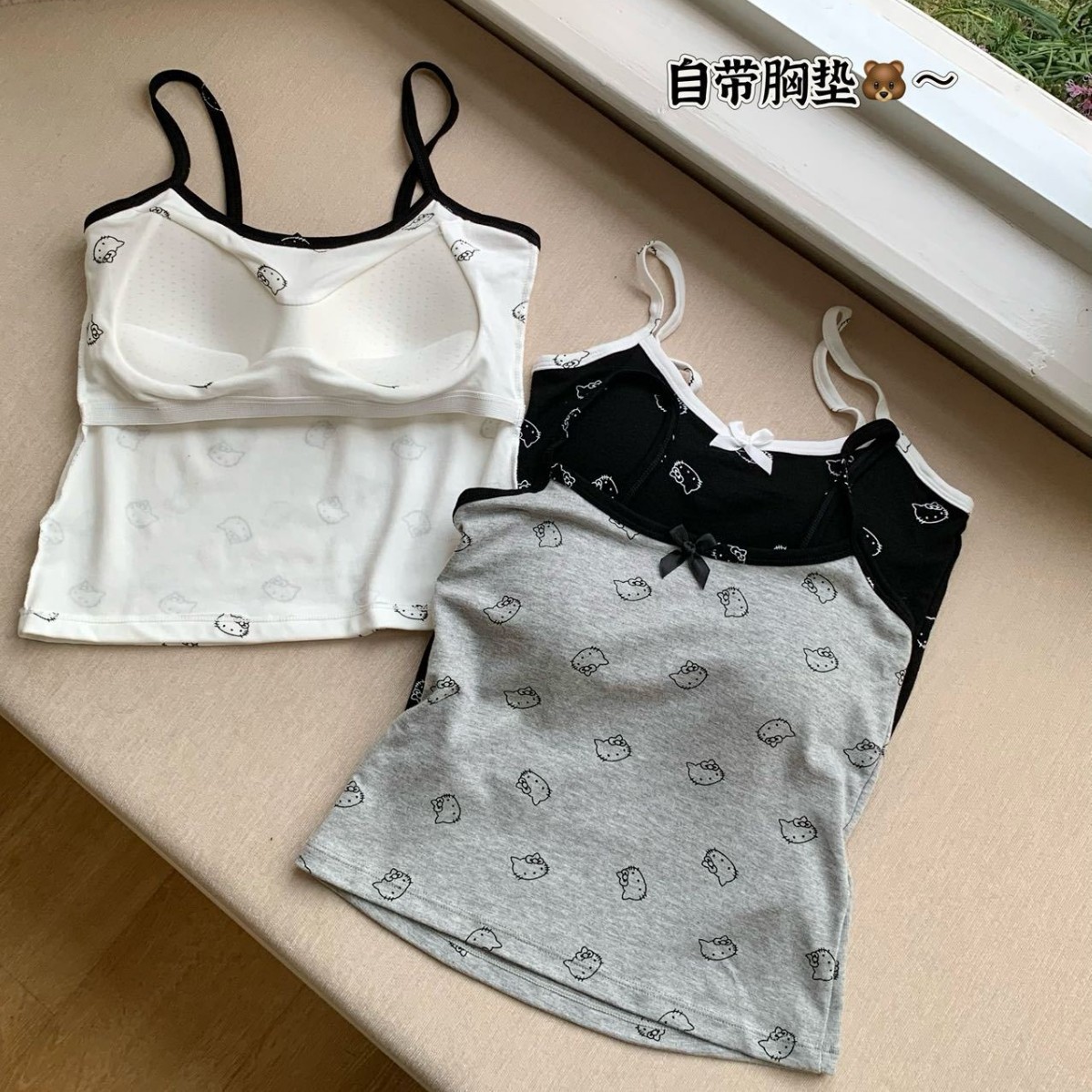 BMサスペンダーベストレースベアーパーティープリント固定胸パッド甘辛トップス美背入り夏レディース