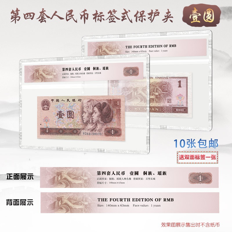 明泰PCCB四版1元ラベル式格付け紙幣ハードカバー保護透明ハードクリップ第4セット人民元ケース