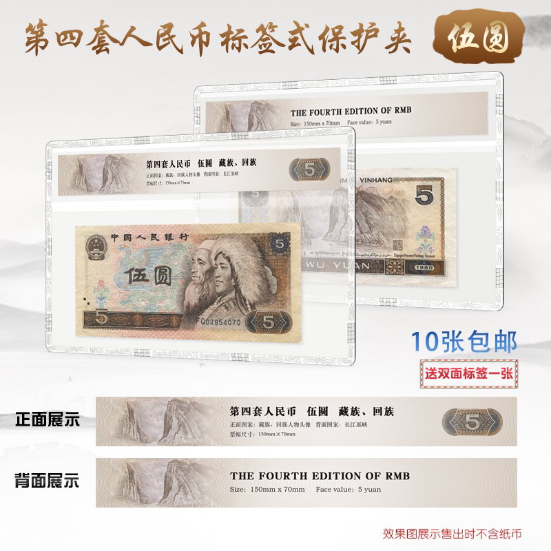 明泰PCCB四版5元ラベル式格付け紙幣ハードカバー保護透明ハードクリップ第4セット人民元ケース